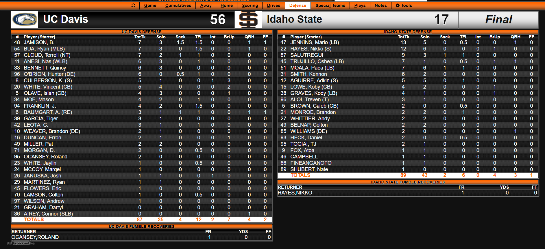 Baumgart’s punishing blow forced a fumble that went 15-plus yards in the wrong direction, which was recovered by the wrong team at the ISU 43-yardline. Two plays later, UC Davis had its 21-0 first quarter lead.