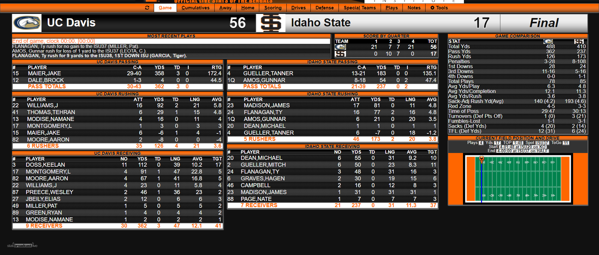 UC Davis (5-4, 3-3 BSC) put together four consecutive clinical touchdown drives before finally being forced to punt late in the second quarter.